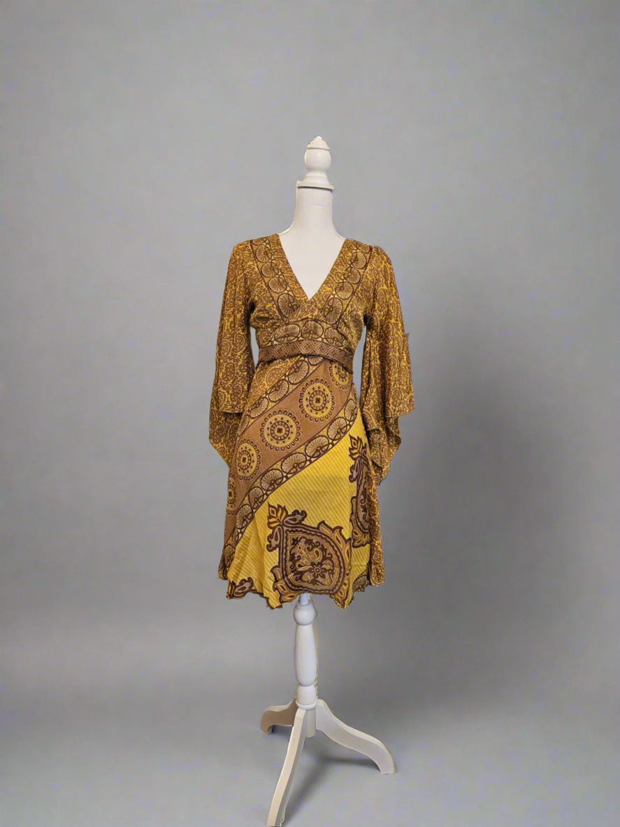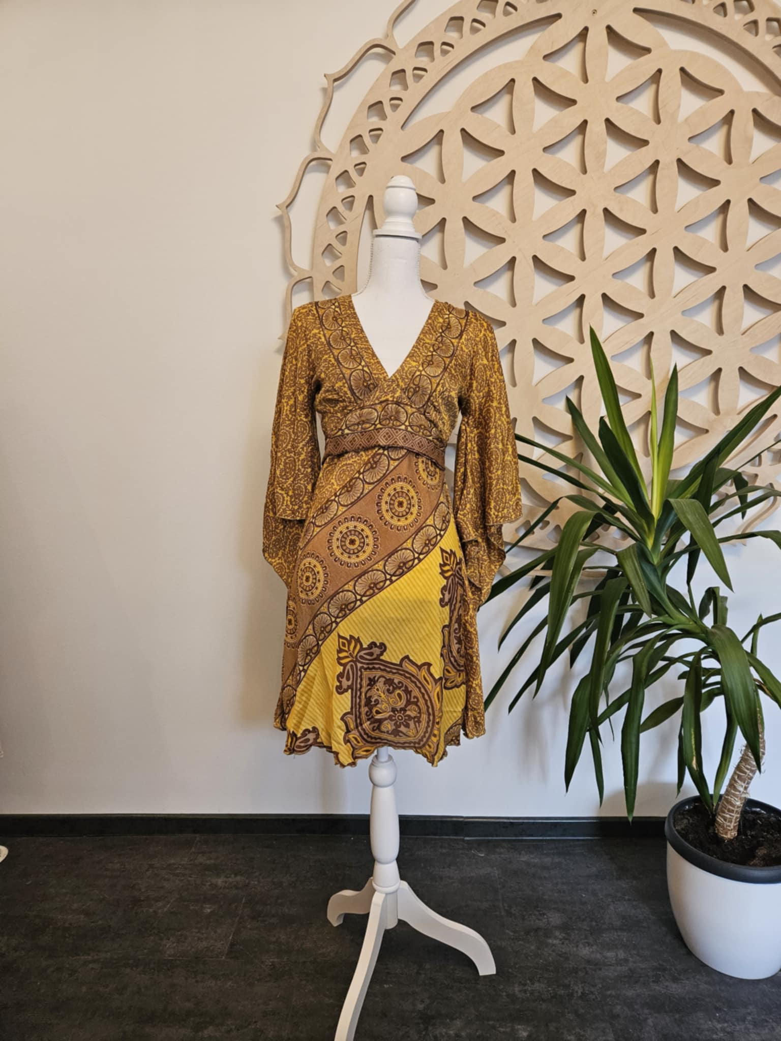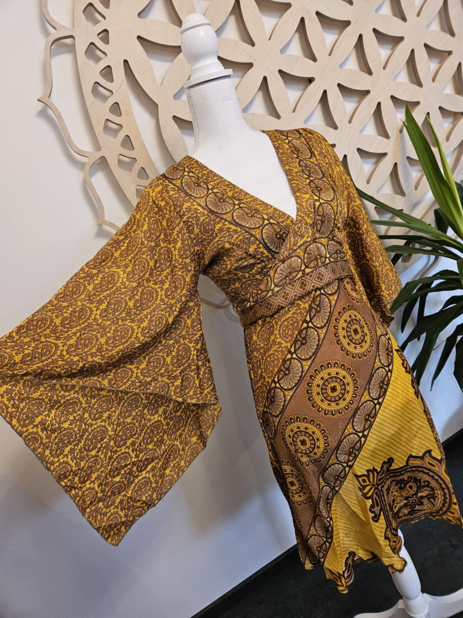 ♻️ Boemska kratka obleka / tunika DANA – Izdelano iz recikliranih svilenih sarij