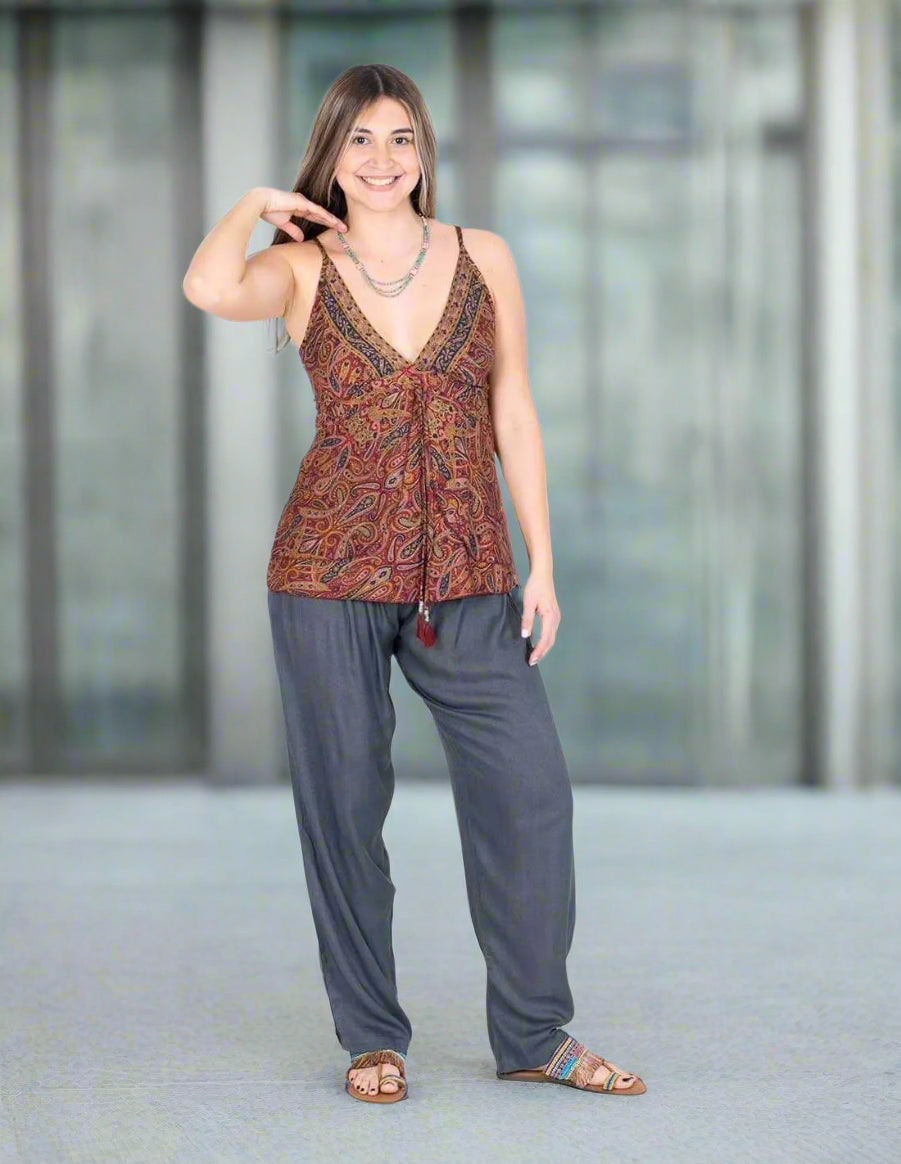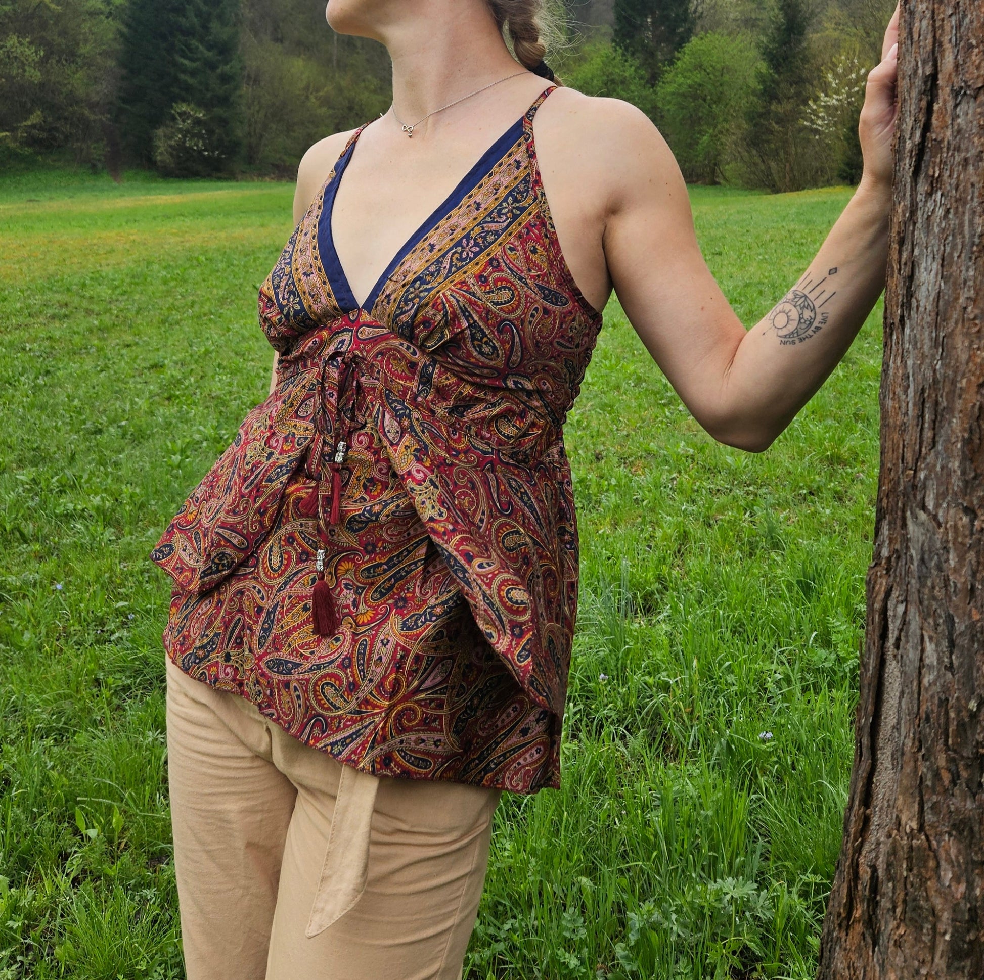 Poživite svoj boemski stil s svilenim topom boginje Ishtar – popolnim za nošenje v plasteh ali samostojno! 💫