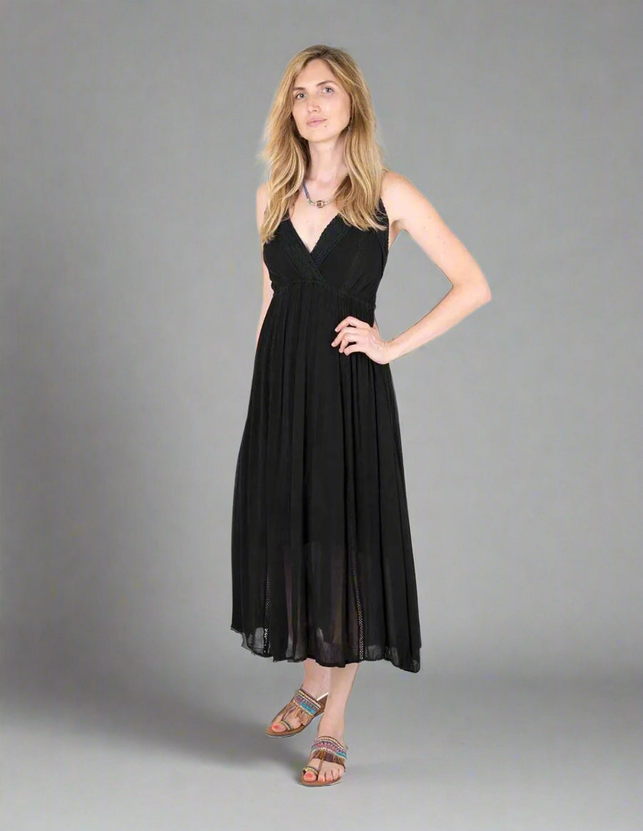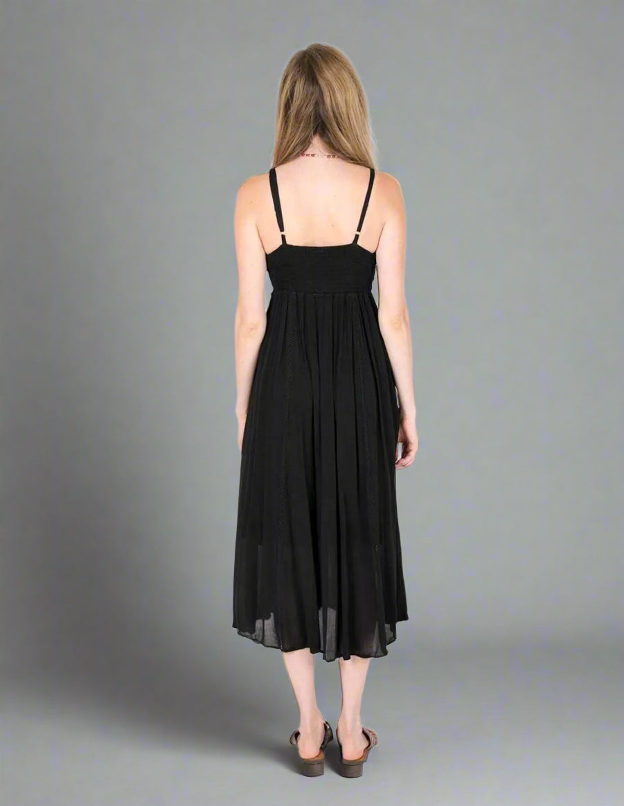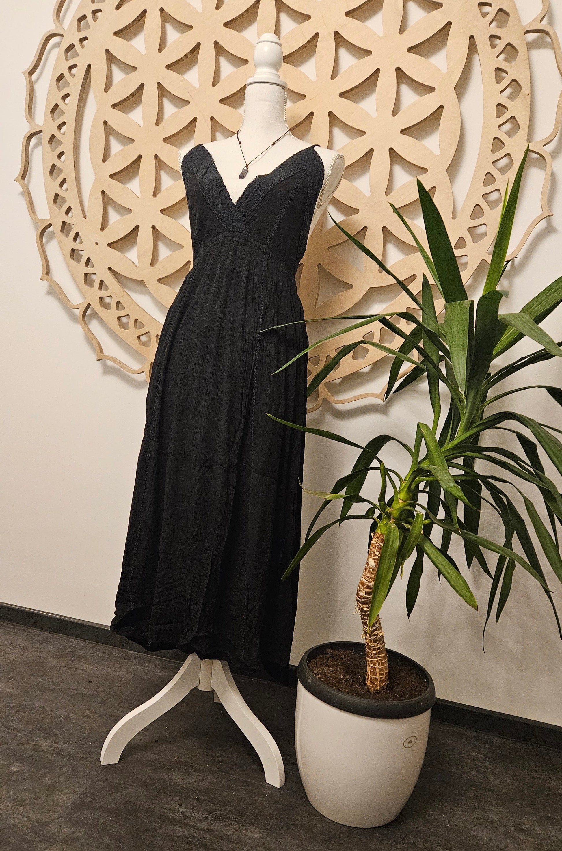 Črna bombažna obleka Kali – lahkotna boemska eleganca