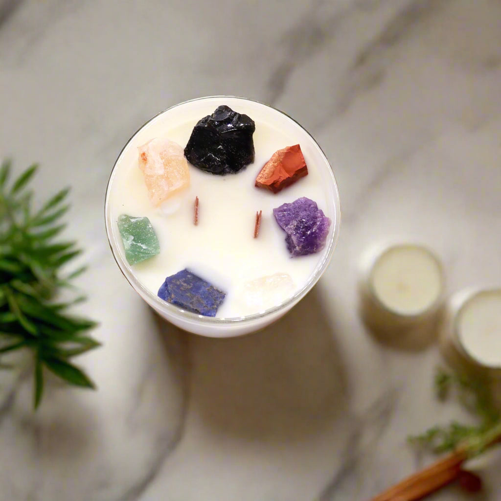 Izkusite zdravilno moč kristalov z našo veliko kristalno svečo Chakra.