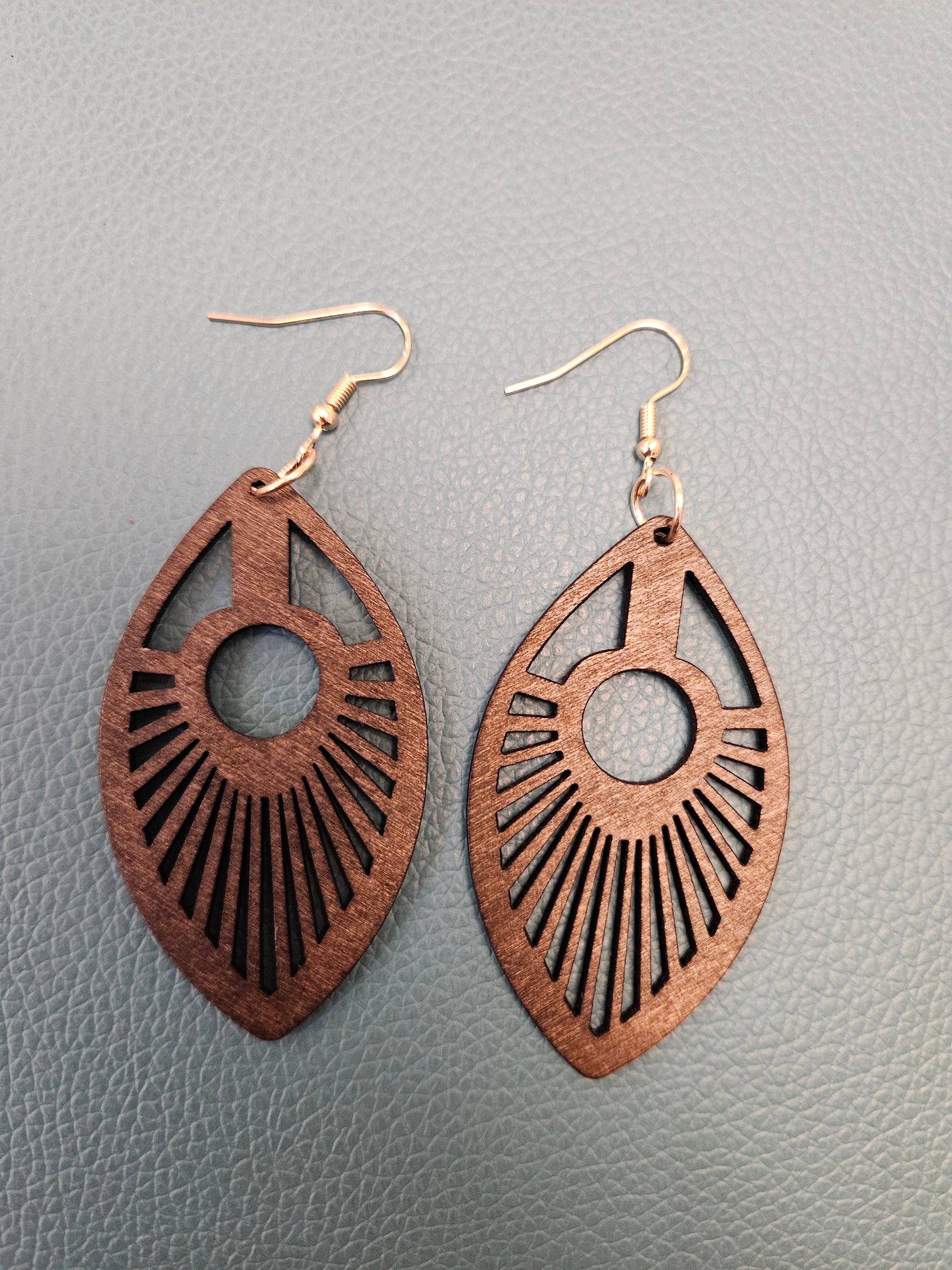 Povzdignite svoj videz z brezčasno lepoto narave. Ti lahki leseni uhani so natančno lasersko izrezani in izdelani iz naravnega lesa, zaradi česar je vsak par edinstven kos nosljive umetnosti.
