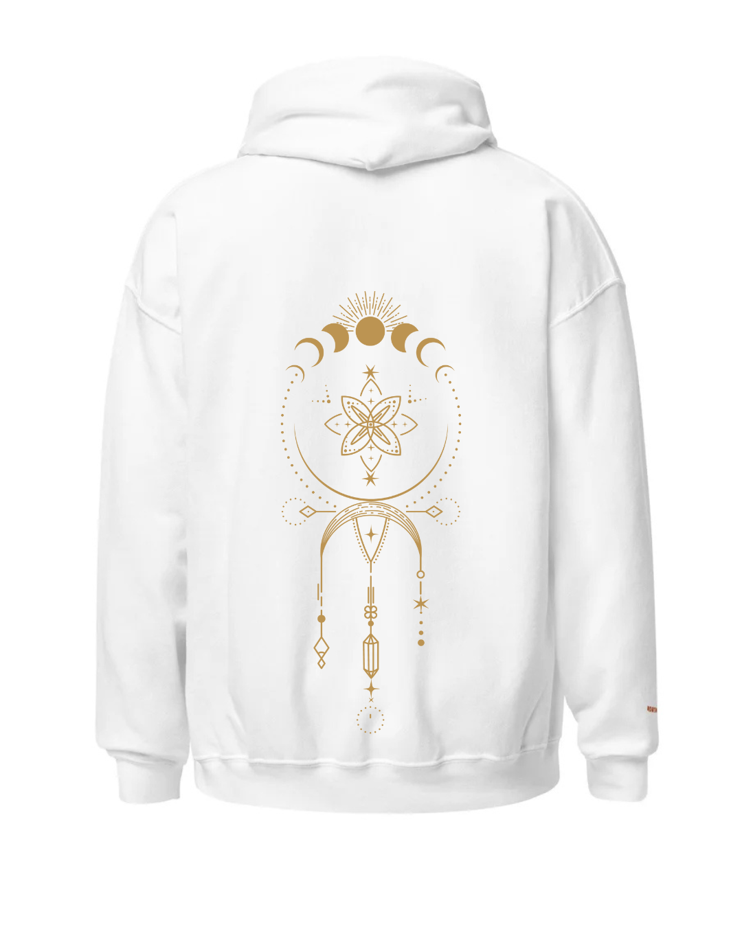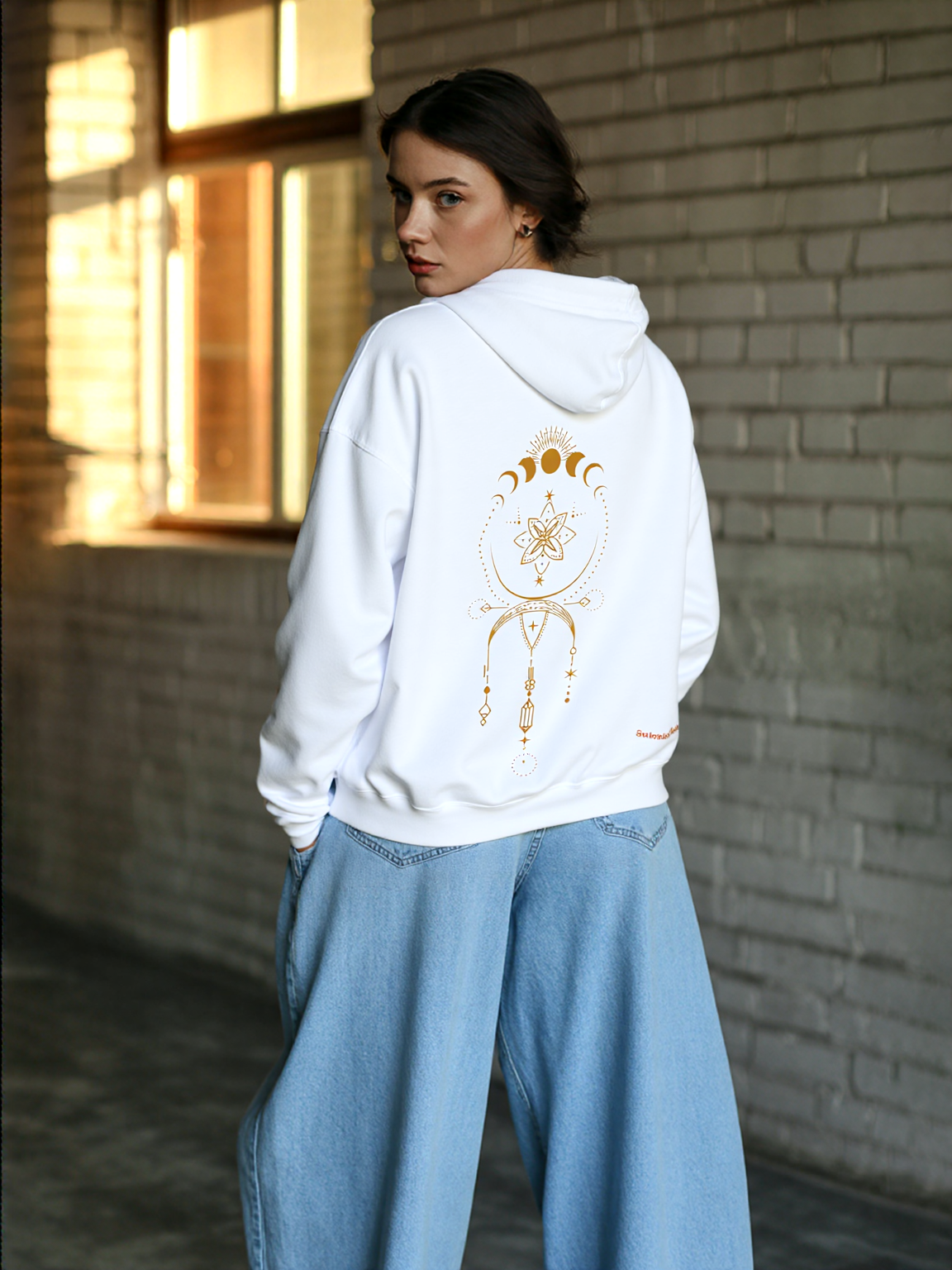 Sprejmite udobje, stil in trajnost s puloverjem Goddress, vašim novim kosom oblačil za vsako priložnost. Ta pulover s kapuco, izdelan iz mešanice vrhunskega organskega bombaža in recikliranega poliestra, je več kot le kos oblačila – je izjava ozaveščenega življenja.