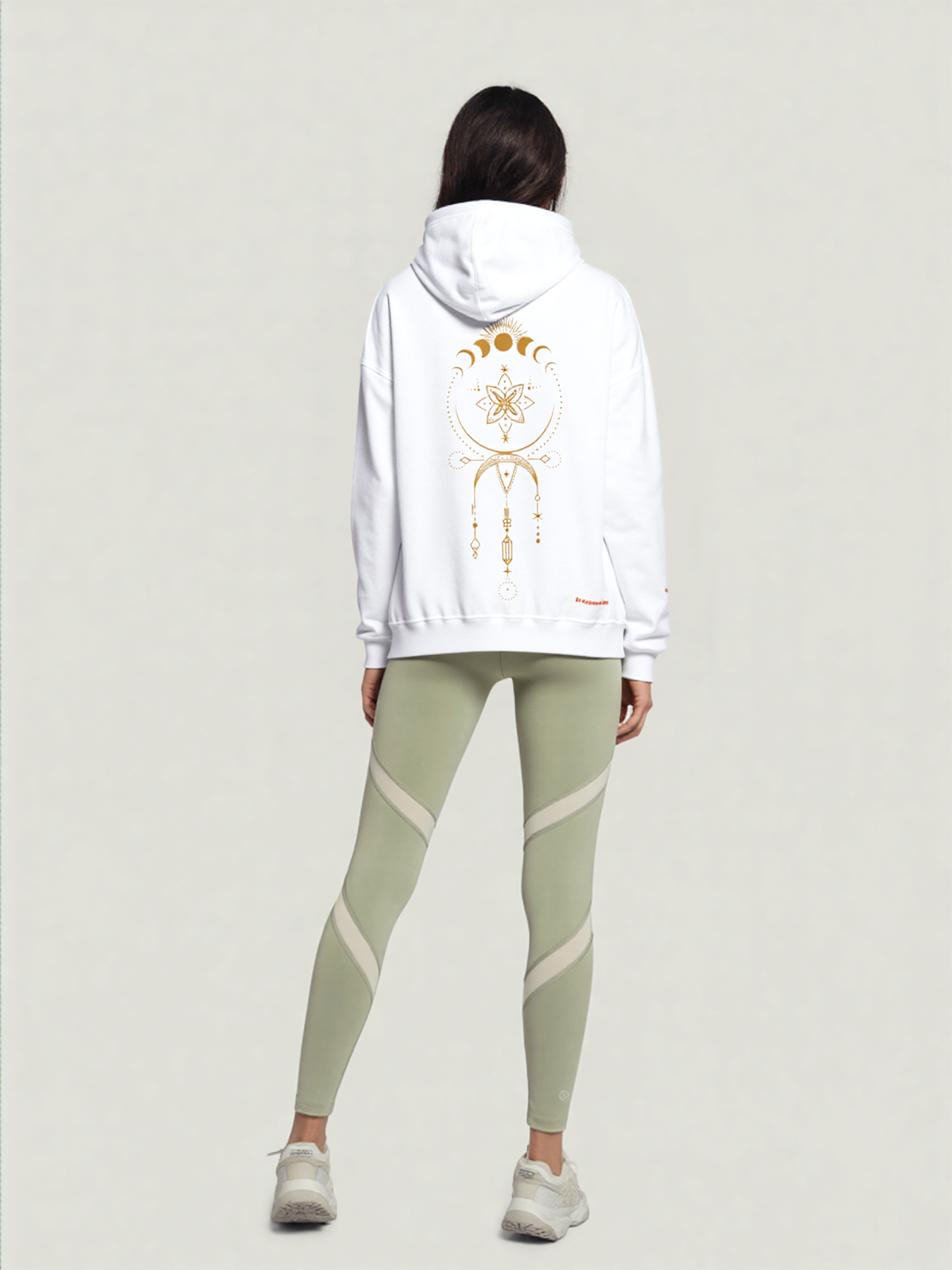 Bela pulover s kapuco Priestess iz organskega bombaža in recikliranega poliestra